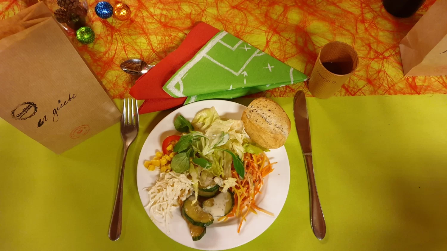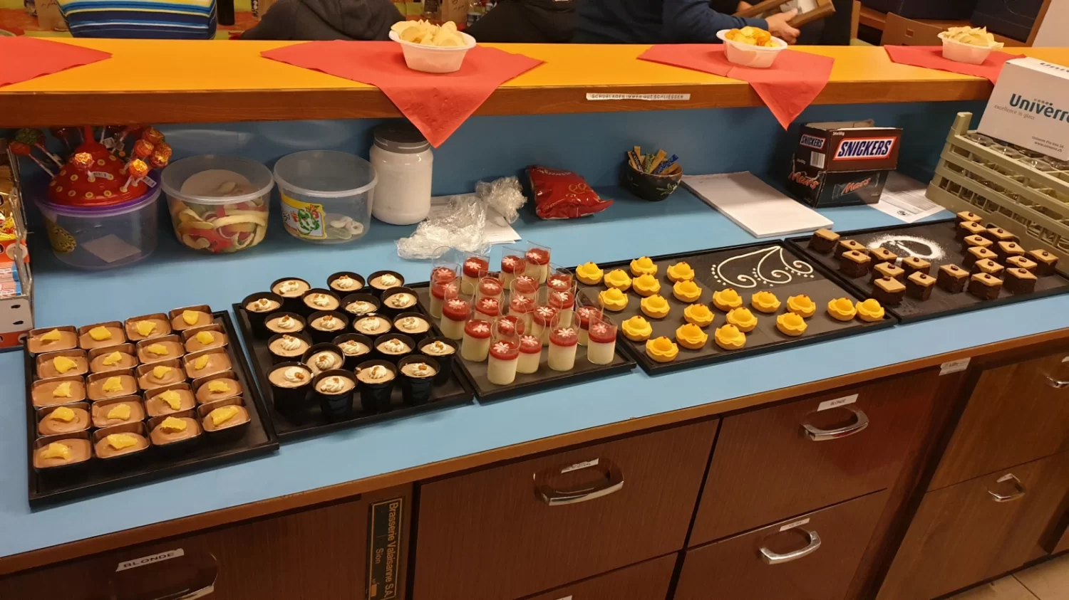 Nach einem reichen Walliser Apéro mit Wein (warm & kalt), Roggenbrot, Hobelkäse, Chips etc. gab's anschliessend nach einem gemischten Salat-Teller das ebenfalls mehr oder weniger traditionelle Menu "Rollschinken mit Kartoffelgratin". Abgerundet wurde das Ganze mit einer feinen Dessertkreation.